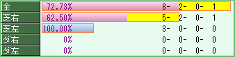 メニューバーより、「ヘルプ(H)」-「設定(O)」を選択して、設定ウインドウを開き、「勝率・連対率・複勝率 初期選択」を変更すると、初期選択ボタンを変更することができます。 |