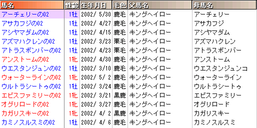 現在は、馬名順にソートされています。