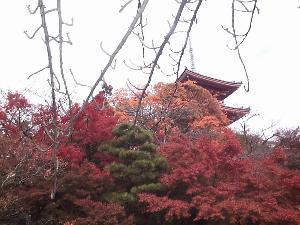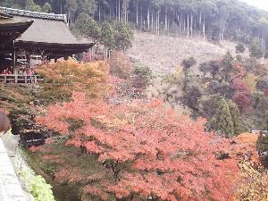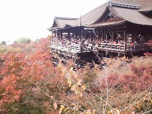 | 【清水寺】 清水寺は開創千二百余年にわたる観音霊場である。 京都では超メジャーの紅葉スポット。左の写真は有名な 『清水の舞台』。カレンダー、絵葉書などの撮影場所より 写したものです。 また今年はご本尊十一面千手観音様の三十三年に一 度のご開帳です。 昼間は紅葉もくすんでいるように見えましたが、夜間 のライトアップはきれいだと思います。 |