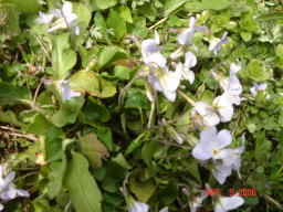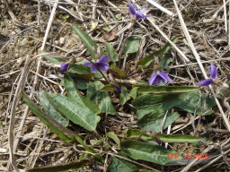 キクバスミレ 田んぼの土手にはアリアケスミレ、 駐車場のアスファルトのすき間に はキクバスミレが咲いていました。 霊園に戻る途中スミレが咲いていました。 スミレは葉が長く葉柄にひれがあります。 霊園の桜も満開できれいでした(^^) |