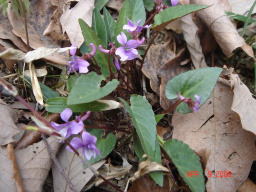 シハイスミレ 葉の基部が深くえぐれています。きょが細くて長いです |