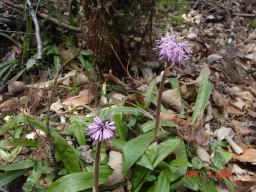 ヒメスミレ 側弁に毛があり、葉が三角状披針形 登っていくと紅紫色のコバノミツバツツジの花も咲いてい ました。雄しべは10本です。 |