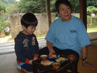 JTB特典 おやつ&お茶「ぽーぽ」 おばあからおやつとお茶をいただいた。 ゆう君はきちんと正座でいただいていたわ(笑) そういえばこのおやつ ゆう君がすごく気に入って お土産に粉買ったのよねぇ まだ作ってないなぁ〜(-_-;) |