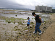 ホテル裏のビーチ ちょうど引き潮で磯遊びするには良い感じ 貝拾い隊(ゆう君&ばあば)は張り切った。 面倒見がいいゆう君は ばあばに 「ばあば足ぬれるよ!」って心配してた(笑) 本当に良いコンビなのよねぇ〜 |