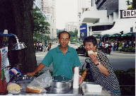 ●Orchard Road (オーチャード・ロード) オーチャードで早速 「伊勢丹」 へ・・・ 中は日本と変わりない普通のデパート。 次へと進む途中 アイス屋を発見したので購入。 食パンの間に甘〜いアイスがはさまって 甘党の方々には大好評でした。 次は「高島屋」へ・・・ ここでは食料品やタイガービールを買いました。 |