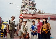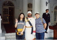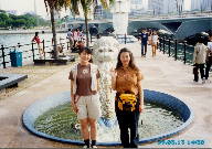 | ツアーパックに含まれている市内観光です。 まずはマーライオン公園へ。あれっ?マーライオンが小さい・・・。 世界の3大ガッカリと言われているらしい。他はなんだったっけ? 次はインド人街の寺院に行きました。色鮮やかな神々の像がいっぱいでした。 オウムで有名になったシバ神も。 途中、宝石工場とワニ皮工場に寄りましたが、旅行会社がマージンをもらってるのでしょう。 伊豆に行ったらひもの屋に寄るようなもんでしょうか。 最後にマンダイ・ラン園に寄りました。ここには数千種類ものランが植えられています。 ちなみにシンガポールの国花はランです。 3時くらいに市内観光は終了。我が家は観光中にオプションのビデオ撮影を頼んでおきました。 (1万円しましたが帰国後にまた笑えました) 市内観光はツアー観光の一部で絶対参加で、宝石工場なんかに寄りますが、 効率的に観光地をまわれて良かったです。 ガイドのお兄さんも親切でした。 |