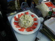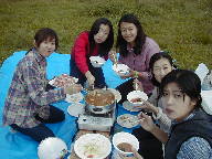 | この日は曇で寒かったので鍋も用意しました。 鍋の中身は味噌味のキムチ鍋。 皆さん鍋もいいですよ。 |