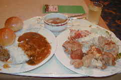 昼食(ランチバイキング) 20分くらい待った。 待ち時間の間、ダンナが列に並んでいて 母と私はホテル内を探検することにした。 お土産好きの母は さっそくお土産屋さんに足を向けた(ハァ・・・) 料理のほうは、まあまあだったなぁ。 デザートがとっても充実していた。 |