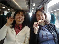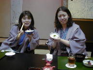 | 8:00起床 昔よりみんな寝起きが良くなった気がするなぁ (それって年寄りに近づいたってことかしら!?) チェックアウトの精算を待っている時間にコーヒーサービスがあった。本当に最後までサービスが行き届いている (部屋にあった浴衣がお土産屋さんで25000円で売っていた。ビックリの値段よねぇ) 駅までは旅館の送迎バスで連れて行ってもらえたので楽チンだった。 |