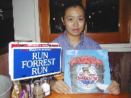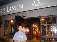| 夕食はBUHHA・GUMPに行きました。映画フォレストガンプでガンプが戦死した親友ババの為に開いたエビ専門店です。 もちろんシュリンプは美味しかったがフィッシュ&チップは最高でした。 | お店の隣には映画のオープニングに出てくるガンプがバスを待っているベンチがあります。靴とかばんも。 |