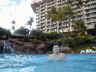 | ホテル到着 カアナパリ地区にあるハイアット・リージェンシー・マウイに到着。 チェックインして水着に着替えてさっそく海へレッツゴー。 といきたいところですが、ホテルが大きくて部屋がわからない・・・。 あれっ?ペンギンが居る。アヒルが歩いてるぞ。ここは動物園かぁ? |