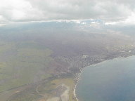 この日のマウイ島は曇。 マウイ島は渓谷の島と呼ばれています。機内から見る景色も確かに山と海の自然でいっぱいです。 |