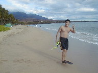| カフルイ空港着 12:45 やっとのことでマウイ島に到着。 JTBのパックツアーだったので、OLIOLIステーションというJTBの現地サービスセンターに行き、滞在中の注意やオプションツアーの説明を聞く。「早く海に行きた〜い」 昼食は軽く?ハンバーガーを食べる。 |