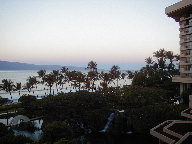 ホテルからの朝の景色。 5時過ぎから目が醒めてバルコニーに出てました。もちろん奥さんはまだ夢の中です。 |
