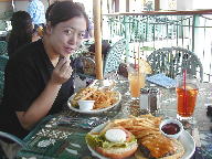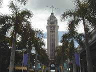 | ホノルル港のシンボル アロハ・タワー | やっと開放されてとりあえず腹ごしらえ。 |
