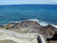 | 潮吹き穴 オアフ島東南部にある潮吹き穴。冷えて固まった溶岩の穴に波が流れ込み、潮を吹き上げるそうです。いつもなら・・・。 そうこの日は波が無く潮が吹き上がってませんでした。 |
