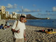 ダイアモンドヘッドをバックにワイキキビーチでとりあえず1枚。 |