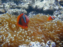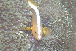 | クマノミもいろんな種類が居るぞ! 伊豆のと違って大きいから、デジカメを持つ手に つついてくるとちょっとビビってしまった・・・。 |