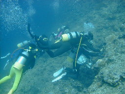 | 減圧停止をしている時に、 ガイドの陣内さんがデジカメを撮るコツを 教えてくれました。 お店に戻るとコーヒーを飲みながら、 デジカメショーが始まりました。 この写真はフラッシュをたくと良かったそうです。 勉強になった。 |