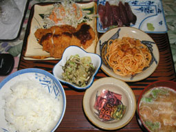 カテラ荘の夕食はボリューム満点。 おかあさんの料理は本当に旨い。 |