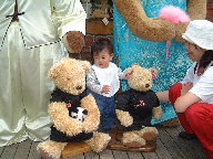 ゆう君、テディと何をお話してるのかな? 「僕の方が大きいぞ」 って言ってるのかしら?(笑) テディに気を取られて ママの差さえ無しで 立ってるのよねぇ〜 すごいわ♪ |