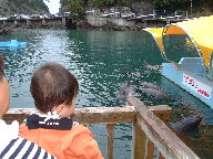 海のイルカさん達を眺めるゆう君。 はじめてのイルカとの遭遇・・・ ゆう君は どんな事を思ったのかしら? |