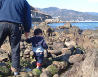 <磯遊び> 川奈を過ぎた海岸沿い(伊東ちょっと手前)のところで磯遊びをしたよ。 はじめは岩がゴツゴツ出てたから危険で ゆう君大丈夫かしらって心配してたけど 結構上手に歩くもんだね。ママの方が不安定で転びそうだったよ。(笑) 本当はゆう君にカニさんを見せてあげたくて 寄ったんだけど、カニさんいなかったんだよね・・・ オサカナさんもいなかったし・・・(´・ω・`)ションボリ 今度行った時には見せてあげられるかな。 |