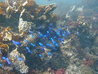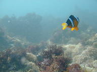 | スズメダイにサクラダイ、コロダイの幼魚も居ます。 | イソギンチャク畑とクマノミ。 じっとしろ! |