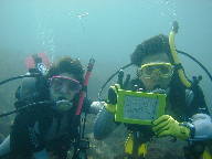 | DIVE No.42 | 2本目 | 2本目は左周りで砂地を中心に水中散歩です。明るくて気持ちいい!秋の海はいいですねぇ。 海底はまたまたネジリンボウ。今度は2匹が頭を出してます。中層を見上げるとアオリイカが優雅に泳いでます。 最後にガイドさんが大きな岩を指差してます。スレートを見ると「イザリウオはどこでしょう?」と書いてます。結局見つけられませんでした。まあ私なんかに見つかっては擬似にはなりませんねぇ。ウェットで潜れるうちにまた来ようっと・・・。 |