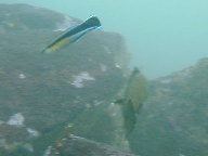 | ホンソメワケベラとクリーニングしてもらっているメバルのお尻 |