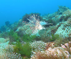 | イソギンチャク畑にミノカサゴ | 近づいてみた。優雅だ。 |