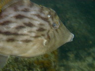 | 顔の前を横切ったカワハギ 横目でにらんでる? |