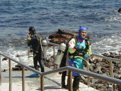 富戸港 ダイビングポイントのすぐ横は港です。 この日は天気が良かったのでちょっと散歩。 防波堤から水中を見ると、小魚がいっぱい居た。 |