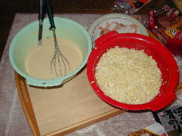 | まずは下ごしらえ。 明らかに今まで間違っていたのは、キャベツの切り方です。前回は千切りにしてました。みじん切りにするって皆さん知ってました? そりゃ不味かった訳だぁ。 |