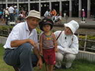 <和歌山・産湯海水浴場> 白浜白波で遠浅の産湯海水浴場は、中紀随一の規模を誇る。 水質がとてもよく、肌にやさしい海岸として、家族連れや若いカップルで賑うらしい。 パパの実家から120キロくらいの距離で 6時出発-8時30分着でした。 海水浴場前にある『橋本荘』という民宿で600円/人の温泉代を出したら 駐車場は500円で使って良いと言う事なので そこでお世話になりました。 実際、海岸に下りる階段の近くだったから便利でした。 しかもこの橋本荘 見た目より中が綺麗でd(⌒ー⌒) グッ!! とてもよかったです。 9時半から13時半の丸4時間 ゆう君は遊びたおしました。 熱中症が心配で一生懸命日陰に誘ったり、水分補給したり 親は大変でした。(^^;) ばあばがペットボトルに水を用意してくれてたので定期的に頭から水をかぶせて クールダウンさせてたけど・・・ ε= (´∞` ) ハァー ここは波が穏やかで水も砂もとてもきれいだったわ パパがカニさんを見つけてきてゆう君の虫かごに入れて ちょっと観賞。 思ったより ゆう君の反応がなかったなぁ ヽ(~〜~ )ノ ハテ? ゆう君はじいじ&ばあばが遊んでくれるから、パパ&ママは魚を探しに のんびり海水浴できました♪ |