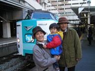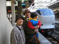 <JR天王寺駅・くろしお> 「くろしお」なんて私からしたら地味な電車だけど ゆう君は見ただけで「くろしお」 ってわかったみたいです。 ビデオに出てたかなぁ?記憶にないわ・・・ |