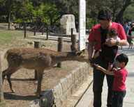 <奈良公園> 到着早々 ゆう君がすっころんでブルーに・・・なんとかアイスでご機嫌取り(^^;; ゆう君 鹿せんべいは怖がってあげませんでした。(ママはもちろんこういうの苦手です) 帰る頃に鹿に慣れてきて 近くまで近づくようになったけど やはりへっぴり腰(笑) 急に鹿が近づいてきたら溝にはまって靴がドロドロに┐( ̄ヘ ̄)┌ ヤレヤレ・・・ 東大寺内にも入りました。 ゆう君は 大きな大仏さんにビックリ!大仏さんの真似を嬉しそうにしていたよ。 結構 細かい所をポイントに真似するのよねぇ(-m-)ぷぷっ ママは小さい頃ココに来た時 柱の穴くぐりが怖くて出来なかったので 今回チャレンジ してみようかと思ってのぞいてみたけど物理的に無理そうなので断念・・・ 今度はゆう君&ひなにくぐってもらおうっと♪ |
