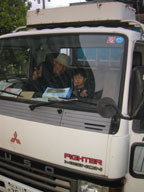 <トラック> じいじの持っている 大きなトラック トラックに乗ってご近所1周してもらったよ。 いつもと視界が高くて違うから ゆう君は(・_・ ) ( ・_・)キョロキョロ見回していたみたい♪ 今度は荷台で遊ばせてもらいたいねぇ〜 |