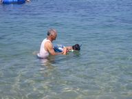 <水晶浜海水浴場(福井県 若狭美浜)> いつもは和歌山の産湯海水浴場に行っていたんだけど今年はHiroに魚を見せてあげたい ということで足を伸ばして福井県の水晶浜海水浴場に行ってきました。 噂どおり すっごく綺麗!透明で砂浜も白く綺麗♪ Hiroはじいじにシュノーケルセットを買ってもらって 早速チャレンジ 日頃のスイミングの成果か 浮き輪をつけて延々と魚探しに没頭していたなぁ〜 深い岩場の方に行ったりもするから 波はないけど見ていてドキドキ Hiro本人は 魚がたくさん見られたことに大興奮してのめりこんでたわ(*^_^*) こんなに喜ばれるとパパもここまでがんばって運転した甲斐があるだろうなぁ〜 ママも少しHiroとシュノーケルしたんだけど その時はイカの赤ちゃんの群れ見ました(^O^) 来年もここに決定だな♪ 高速:吹田ー京都東1300円/敦賀ー竜王1250円/栗東ー吹田1850円・・・4400円 駐車場:1500円 昼ごはん(ミニストップ)2000円 ガソリン別で 7900円也 |