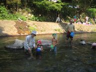 <高野川 川遊び♪> 義妹さんの近くの高野川 これまたお盆帰省の最終日の楽しみ川遊び\(^▽^)/ 今回は天気が良かったからか 去年の記憶より人手が多かったなぁ イス5脚にテーブル出してジンギスカン鉄板で焼肉大会パクッ(* ̄0 ̄)●ゞ お肉は柔らかいし 作ってもらったおにぎりも美味しいし しあわせ〜っ そうそう義妹さんがヘルシオでから揚げを作ってくれました。 オーブンレンジでから揚げができるなんてすごいよね。 揚げ物って好きなんだけど 油の後処理が面倒でいやって思ってたがヘルシオがあれば 後処理ないなんて〜すごい兵器だわ。欲しい〜っ 川遊びの後は義妹さん宅で全員シャワー借りました。申し訳ない・・・ 感動したのが シャワー後のアイス\(^▽^)/ 可愛いガラスの器に カップアイスを取分け自家製ヨーグルト&自家製ジャムをかけてくれたの カフェで食べる感じで感動♪ こういうちょっとした工夫が必要だよね。見習わないとなぁφ(*-.-*) メモメモ |