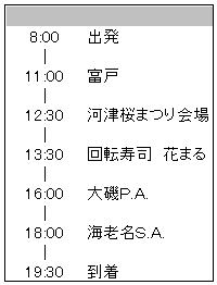 | 3月11日(日)晴天 出発はめずらしく朝早かった。 でも今回はメインドライバーじゃないからラクチン♪(笑) はじめは順調だったけど 熱海でマラソン大会をやるみたいで 大渋滞・・・ (-_-#) ピクピク 河津さくら祭り会場に着くのに結構時間がかかっちゃったよ。 本当は祭りは昨日までだったんだけど、今日は天気もいい からか結構賑わって出店も沢山出てたよ。\(^-^)/ お祭り気分はいいねぇ〜っ ワクワクするよ。 手作りのソーセージやこんちゃく玉をつまんでから 回転寿司へGO! ここはネタが大きくて新鮮で美味しかった。 でもね・・・お値段が 高かったよ。(T_T) いつもの「ふじいち」で干物のお土産をかって 一路東京へ ノア君を買った当初 心配してた 山道の車酔いも無く 元気に帰ってこれたから良かったぁ〜っ お〜っと!メインのさくらに関してのコメントがない!? 桜はすごく綺麗だったぁ〜っ 春を感じたわ♪ でも、我が家は本当に「花よりダンゴ」タイプなんだなぁ〜 |