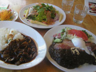 <ROCK>★公式サイト パパ*ベーコンカレー自家製ベーコン&ポーチエッグ(サラダ付)1200円 ママ*ROCK風ハヤシライス(サラダ付)1200円 ばば*高原野菜とフレッシュハーブの生ハムサラダ&パン1150円 清里・萌木の村にある素敵なレストラン。 偶然このお店に入ったんだけど、ここは大正解でした☆ オススメ〜☆ 店内もオシャレだし、子供が喜びそうなオシャレな造りで気に入ったわ。 残念ながらここに入った時はゆう君お昼寝で食べてないんだけど、子供メニューも 豊富にありました。もちろん子供イスもね♪ 料理はパパの頼んだ カレーが目玉だったみたい。 ちょっと食べさせてもらったけど、激ウマでした。あんなカレーは家庭では作れない。 ぜひ清里に行くのだったらよってもらいたいお店でした。 うちはここに寄るのが定番になりそう。(笑) |