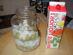 本番 保存箱に青梅・氷砂糖を交互に入れる (結構てきとうな分量でOK) ↓ 最後は氷砂糖で終わるようにする ↓ ホワイトリカーを注ぎ入れる |