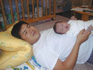 パパのお腹の上で ポヨポヨして気持ちが良いのか とてもご機嫌の悠洋くん