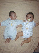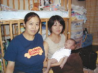はじめてのお友達 今日はママの小学校時代からのお友達、 美奈子ちゃんといっちゃんが 遊びに来てくれました。写真は いっちゃんの生後6ヶ月になる達也君です。 ゆう君は 初めてのお友達とのふれあいだったけどとてもマイペース・・・。 達也君、また遊びに来てね。 (右:達也君キック 左:ゆう君パンチ →) 赤ちゃんがゴロゴロ並んでる風景は、とても のどかでかわいかった♪ なんで赤ちゃんを見てると眠くなっちゃうのかなぁ〜〜不思議だわ。 |