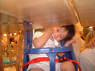 | 2001/07/29 | プレキン 本当は”としまえん”に行くつもりで用意をして家を出たの。 だけど”としまえん”に行ってみて(ノ゚听)ノびっくり!! すごい混んでるのぉ! 出発したのが遅かったんだけど、あんなに混んでるとは・・・駐車場待ち3時間だってぇ! そこで予定変更をして先週楽しかった”ららぽ”にまた行ってきちゃった。d(*⌒▽⌒*)b ららぽに着いて早速ランチ!今回はシズラーに入ってみました♪ シズラーだとサラダ食べ放題のメニューの中に ゆう君が食べれるものがたくさんあるからね。 案の定、ゆう君はビックリするくらいの食欲でたくさん食べてくれたわ。( ̄〜 ̄) ムシャムシャ ( ̄へ ̄|||) ウーム 普段あまり食べないのに不思議だなぁ〜・・・ 食べた後はウィンドウショッピングして ブレキン(プレイキングダム)ヘ・・・ ここにはたくさんのおもちゃやボールプールがあって楽しい子供の遊び場って感じ♪ ゆう君のお気に入りの場所のひとつなんだ。 ついてすぐ、おもちゃの大きなお家の窓を開けたり閉めたりして遊んでたら ちょっと大きい お姉さんに「ここは開けないでぇ!」って言われてバタンって閉められちゃったの。 もうゆう君ったら大泣き 号(┳◇┳)泣 (ゆう君はドアとか閉められるのが嫌いなのだ) 泣き止んでしばらくして またお家に近づいて窓を触ろうとすると「開けないでぇ〜」って言われて 泣いて・・・の繰り返し・・・ 懲りない男なんだなぁ〜 ヤレヤレ ┐(○`ε´○)┌ マイッタネ いつも どちらかと言うと友達を泣かしちゃう側のゆう君が 泣かされるとは(笑) たまには 良い薬かもね。 しばらく遊んでると今まで できなかったすべり台やジャングルジムに興味を持ってきて うまく遊べるようになったんだよ。子供の成長&好奇心ってすごいわよね。 最後にプラレールの部屋で遊んだんだけど、その部屋ではパパの方が楽しそうだったなぁ〜 結局2時間まるまる遊んじゃったわ。 おかげで帰りの車では ゆう君もママもぐっすり ネンネ m(* ̄〜 ̄)moOO グゥグゥ そうそう、ららぽを散策中に地球防衛郡のブラックとブルーを見たよ。 彼らは営業中だったみたい。お疲れぇ( ̄ー ̄)ノ▽”フリフリ |