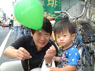 | 2001/07/28 | 夜祭り 今日は昼間の予定がキャンセルになっちゃったから、出かけたくてウズウズしてたの。 ( ̄0 ̄;アッ ウズウズしてるのは ゆう君だよ。(笑) だから 夕方 恒例のケンコーマヨネーズのセールに行ってきた。 いつものごとく ドレッシングやマヨネーズが安かったぁ〜 試食もたくさんあるしね(笑) セールで買っちゃうと 普通に買うのがばかばかしくなっちゃうわ。 その後、永福町北口商店街の夜祭りに行ってきたよ。 先着200名様風船プレゼントの風船をもらって ゆう君は大喜び♪ 最近は 風船類が大好きなんだよねぇ〜 もう風船を渡せばニコニコなのd(*⌒▽⌒*)b しばらく┏( ̄ー ̄;)┛=3=3ウロウロε=ε=┏(  ̄ー ̄)┛ したら疲れたらしく寝たの。 最近は 遊ばせるだけ遊ばせて バタンキューって寝るパターンが多いなぁ でも、そうすると眠りが深いからいいのよねぇ〜 ゆう君は 車が大好きなの。車のおもちゃを持ってると ず〜っと「ブーン」って言いながら 遊んでるんだぁ〜 あと、丸いものを持たすとハンドルのマネするのよ。 将来、ママを乗せてドライブしてね♪ 待ってるわ〜っ (〃^∇^)o_彡☆ |
