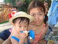 | 2001/08/01 | としまえん 今日はプール券をいただいたので”としまえん”にばあばと行ってきた。(日曜日のリベンジ) としまえんに行くのなんて 高校生以来かしら!? めちゃくちゃ懐かしいわ〜 平日だって言うのに 人が多かったぁ〜 としまえんって正門からプール入口まで結構距離あるのね。 私達は 途中でダウンしてちょっと早いランチを中華料理屋さんで食べたんだけど、 そこのコーンスープが美味しかったの♪ ゆう君も気に入ってバクバク食べてたわ o(*^▽^*)o~♪ としまえんのプールの更衣室って・・・「きたない・あつい」だったのぉ〜。 もう 着替えるだけでも げっそり・・・ 汗だくになっちゃったわよ。ンモォー!! o(*≧д≦)o")) 着替えも終わって プールへ (/*⌒-⌒)o レッツゴー♪ 今回は無料で来れたから ちょっとリッチに有料サマーベットを借りてみた。 ゆう君がいるから 日影の方が良いもんね。 でも、これは借りて正解だったわ♪ とても気分的にも場所的にもゆったりできたし d(⌒ー⌒) グッ!! 今回の ゆう君のプール遊びはすごくご機嫌だったの。 波のプールでほとんど遊んでたんだけど、嬉しそうにチャプチャプず〜っとやってたよ。 あんなに喜んでくれると 連れてきたかいがあるわ♪ ヾ(@⌒▽⌒@)ノワーイ! あと、流れるプールにも挑戦したんだぁ〜。 大阪のばあばが買ってくれた 浮き輪でプカ―って流れに任せて浮かんで周ったの。 はじめは ゆう君の顔がこわばってたけど、途中で慣れて楽しい顔になってた。 でも、高校生くらいの血の気が多い年代が多くて ちょっと危険そうだったから1週だけして 波のプールに戻ってきちゃった。子供プールも充実してたんだけど、子供がたくさんで 結構ハードにバジャバジャやってたから そこも恐がっちゃいそうだったから避難しちゃったわ。 ゆう君がプールをたのしんでくれると、こっちも楽しい気分になるわ〜っ プールで3時間くらい遊んじゃった♪ また連れてきてあげよ〜っと |