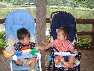 | 2001/08/02 | また 吉祥寺0123へ 母親学級のメンバー ななみちゃんと吉祥寺0123に行ってきた。 本当はけんちゃんも一緒だったんだけど、熱が出ちゃってキャンセルになっちゃったんだぁ〜 いつもは 男2・女2のグループ交際だったんだけど、今日はななみちゃんとツーショット♪ 0123は前回同様混んでたわ〜 今回は10時45分から始まるみんなでやる手遊びに 間に合う様に行ったから、更に倍 楽しかったのd(*⌒▽⌒*)b ニコニコッ 集まってるみんなで お歌を歌ったり、手遊びしたり体操したりで ゆう君も嬉しそうだったわ。 また この時間に合せてきたいなぁ〜 ランチはシルバニアの森に行く予定だったんだけど、途中で2人ともベビーカーの中で 寝ちゃったから”タパスタパス”に予定変更! 昼間っから ママ2人でビール飲んじゃったわ。 それにパスタも美味しかったし、ゆっくり話せたしもう大満足!! ヾ(@⌒▽⌒@)ノワーイ! 子供達のランチは”カーニバル”で詰め合わせを買って、井の頭公園で食べさせたの。 暑くなく 風も気持ち良くて 外でランチするにはいい感じ♪ いつも小食のゆう君も ななみちゃんがいるから 一緒になって食べてたわ。 ̄m ̄ ふふ 外でだと、食いこぼしも気にならないし良いわよね。 最近のゆう君のヒットは、「チュ―して」って言うと口にチュ―してくれる様になったの。 それもDEEPなKISSなんだよ。照れちゃうわ。(* ̄◎ ̄*)ぶっっちゅうううん♪― なんでそんな事覚えたんだろう!? 偶然じゃなく必ずやるんだよねぇ あと、「良い子良い子は?」って言うと頭をなでてくれるようになったの。 それも急にやるようになったんだよねぇ〜・・・ どうしてなんだろう ・・・( ̄  ̄;) うーん まぁ〜 とりあえず 進歩してるって事かな(笑) あとは 友達にも「いい子いい子」やってくれると嬉しいなぁ〜っ |