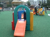 | 10/12 | 0123&東急の屋上 またしても0123に母親学級メンバーと出没。 うちらは ここの11時くらいからの 手遊び歌コーナーが大好きでこの時間を狙って行ってるんだ。 みんなでお歌を歌ったり手遊びしたりするのって すごく楽しいし、子供達も大喜びなんだよ。 もちろん ここの遊具で遊ぶのも楽しいんだけどね♪ 今までは 外のコーナーは汚れるから敬遠してたんだけど、ゆう君は興味深々なんだよね・・・ 今度行く時は 外遊び着を着せて来て 外で遊ばせてあげようかなぁ〜 砂場もあるしね♪ ランチは東急デパ地下で買って屋上で食べたんだぁ〜 私は来たの始めてだったんだけど、ここはすごくd(⌒ー⌒) グッ!! ちゃんとテーブルもあるし、あっ もちろん楽しそうな遊具もたくさんあるんだよ。 わんちゃんもペットショップの所にいるから会えるし♪ ここはチェックだわよ! あと、東急の子供服の階にプレイスペースが増えてたよ。 ここでも ゆう君は大興奮! よだれがジュルジュルになってた。(笑) ε- ( ̄、 ̄A) フゥー ママも一緒になって動かないといけないから疲れたよ・・・ でも、昼間すごく遊ぶと夜寝るのが早いから いいわ〜 |